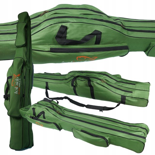 Чохол виготовлений з жорсткого матеріалу кольору армійського зеленого. Має 2 камери по 150 см. Зручно носити в руці або на плечі, міцно виготовлений з дуже якісного жорсткого матеріалу.Збоку є кишені, в яких можна носити менші аксесуари, їх розміри: 55х12 см і 32х12 см.