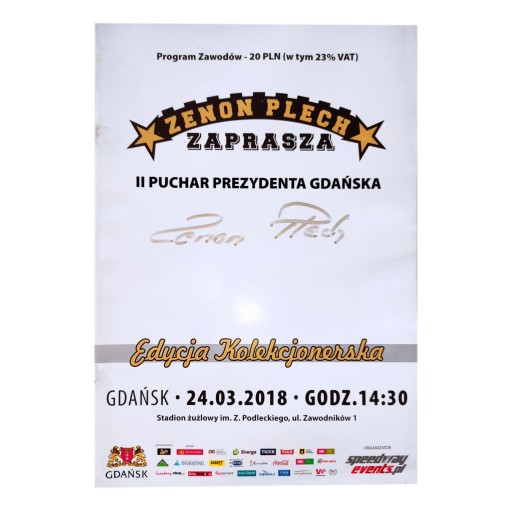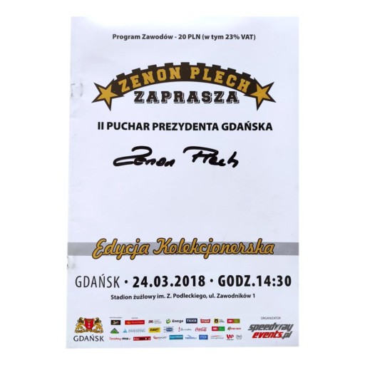 ЗЕНОН ПЛЕХ ЗАПРОШУЄ НА КУБОК ДРУГОГО ПРЕЗИДЕНТА ГДАНСЬКА 24/03. 2018 З АВТОГРАФОМ
