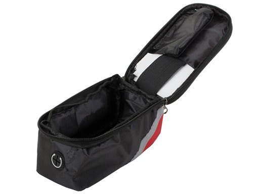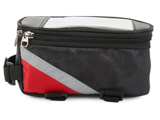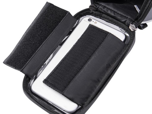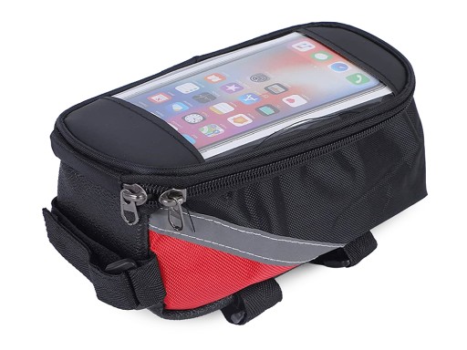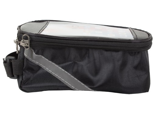 Сумка виготовлена з міцного матеріалу. Зручний у використанні, він дозволяє легко використовувати всі функції телефону під час їзди на велосипеді. Кріпиться на раму велосипеда за допомогою регульованої липучки. Він може вмістити пристрої з діагоналлю макс. 6.8'' Прикрашений світловідбиваючою смугою для підвищення безпеки на дорозі.