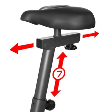 Szerokie siodełko z miękkim wypełnieniem zapewnia najwygodniejszą pozycje do ćwiczeń podczas jazdy, natomiast jego regulacja wysokości w zakresie 7 stopni pozwala na dokładne dopasowanie do wzrostu osoby ćwiczącej.
