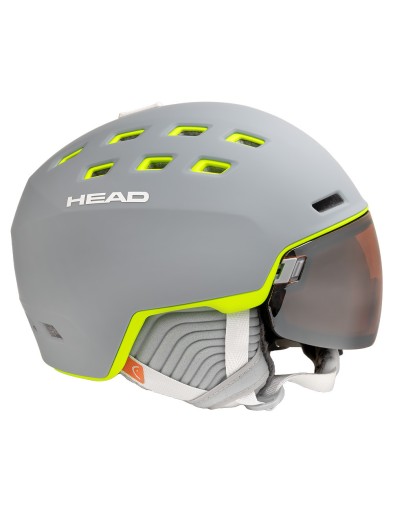 Шолом Head Rachel поєднує в собі переваги носіння окулярів і шолома одночасно. Він забезпечує широке поле огляду та захист від вітру, снігу та сонця. Подвійне скло з антизапотіваючим покриттям для максимального комфорту. Залежно від погодних умов вікно легко піднімається або опускається. Окуляри кріпляться на спеціальній гумці і своєю формою ідеально вписуються в профіль шолома. На корпусі є спеціальний фіксатор, який утримує окуляри в заданому положенні після підняття. Завдяки великому простору під склом шолом особливо рекомендований людям, які носять окуляри. Магнітна пряжка Fidlock дозволяє легко надягати і знімати шолом, не знімаючи рукавичок.