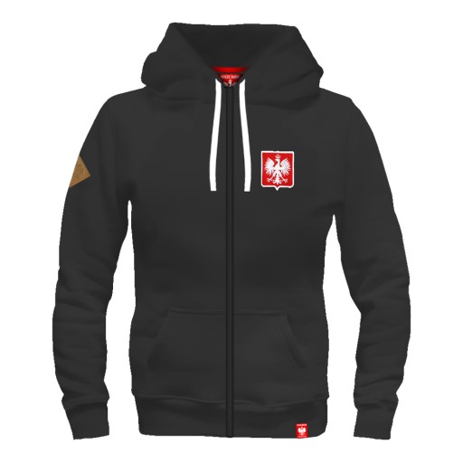 Тонкий посил і гордість, виражені польським гербом на грудях, надають представленому світшоту особливого характеру. Герб Польщі виконано у вигляді вишитої аплікації, яка ретельно відтворює форму білого орла з короною на червоному щиті. Теплий і зручний світшот, і водночас чіткий меседж, є ідеальним поєднанням для кожного, кому близький девіз – Бог, Честь, Батьківщина та любов до Польщі. Толстовка на блискавці є ідеальною пропозицією для повсякденного використання у весняний та осінньо-зимовий сезон, а також для особливих подій, таких як матчі польських спортивних команд. У нашому світшоті Ви точно виділятиметеся серед біло-червоного натовпу!