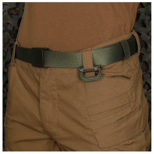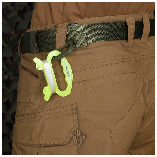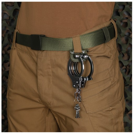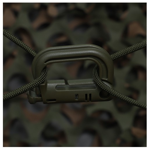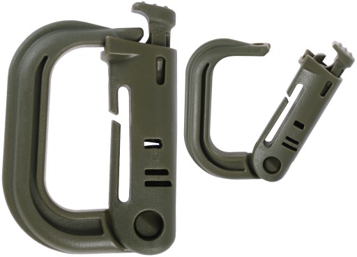 Закривається простою засувкою. Спеціальний виріз дозволяє кріпити карабін на лямках системи Molle, що робить його практичним доповненням до тактичного жилета, рюкзака або сумки,