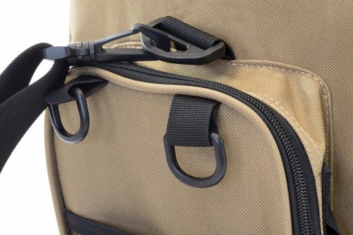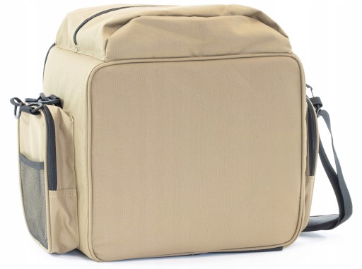 Зручна рибальська сумка з водонепроникного неопрену. Має 20-літрове основне відділення на блискавці. Кришка має ребра жорсткості по краях, а також по боках сумки, а дно повністю жорстке. Кришка основного відділення має внутрішню кишеню на блискавці. На передній частині сумки розташована прорізна кишеня на блискавці з жорсткими краями кришки. З боків дві кишені на блискавці з жорсткими краями кришки. Сумка має міцний і регульований плечовий ремінь, і два менших ремінця, завдяки яким сумку можна носити в руці.