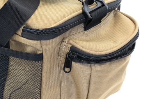 Зручна рибальська сумка з водонепроникного неопрену. Має основне відділення об'ємом 13,5 л на блискавці. Кришка має ребра жорсткості по краях, а дно сумки повністю жорстке. Кришка основного відділення має внутрішню кишеню на блискавці. На передній частині сумки розташована кишеня на блискавці з жорсткою кришкою. З боків дві кишені на блискавці з жорсткими кришками. Сумка має міцний і регульований плечовий ремінь, і два менших ремінця, завдяки яким сумку можна носити в руці.