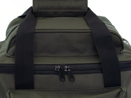 Зручна рибальська сумка з водонепроникного неопрену. Має 18-літрове основне відділення на блискавці. Кришка має ребра жорсткості по краях, а дно сумки повністю жорстке. На передній частині сумки є кишеня на блискавці. З боків дві кишені на блискавці. На кришці основного відділення є ще одна кишеня на блискавці. Всі кишені мають жорсткі краї. Передня кишеня також має жорсткі краї кришки. Сумка має міцний і регульований плечовий ремінь, і два менших ремінця, завдяки яким сумку можна носити в руці.