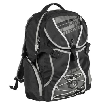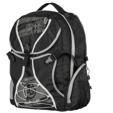 Plecak Powerslide SPORTS Backpack to wygodny i pojemny plecak na rolki do codziennego użytku. Posiada pas piersiowy i biodrowy, anatomicznie wyprofilowane plecy oraz regulowane szelki. Wyposażony jest w dwie niewielkie boczne kieszenie zapinane na zamek, niewielką kieszeń z tyłu przy lewej szelce oraz podręczną kieszeń z przodu. Główna komora pojemna posiada praktyczny organizer + siatkę. Dodatkowo otwór na słuchawki opcja przytroczenia rolek na zewnątrz i praktyczne odblaski.