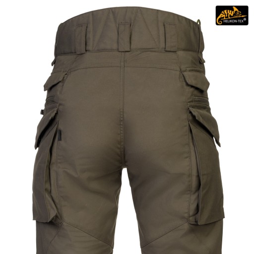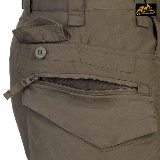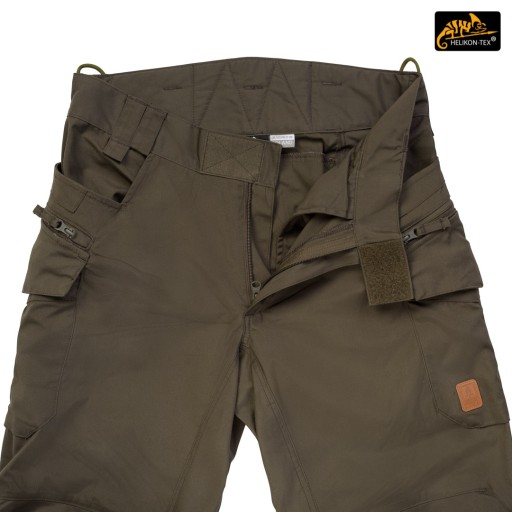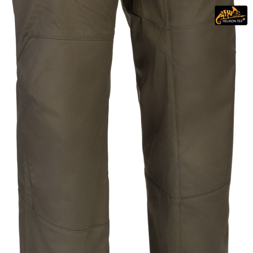 Штани посилені додатковим шаром матеріалу в місцях, найбільш схильних до зносу (сидіння і коліна). Коліна оснащені анатомічними складками, які забезпечують додатковий комфорт і захищають від висування матеріалу. Внутрішні кишені для поролонових вставок (Helikon Low Profile Pad) - протектори колін. Накладні та бічні кишені застібаються на міцні блискавки від японського бренду YKK. Застібки-блискавки бічних кишень оснащені стрічками для спрощення їх роботи. Суцільні шви, множинні в критичних місцях. Краї матеріалу закріплені оверлочною строчкою. Внутрішні підсилення з нейлонової стрічки в місцях, які найбільш схильні до розриву.
