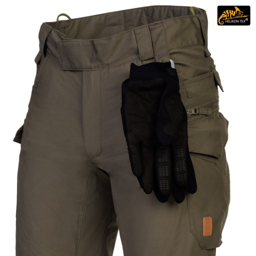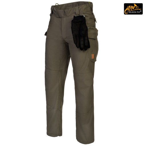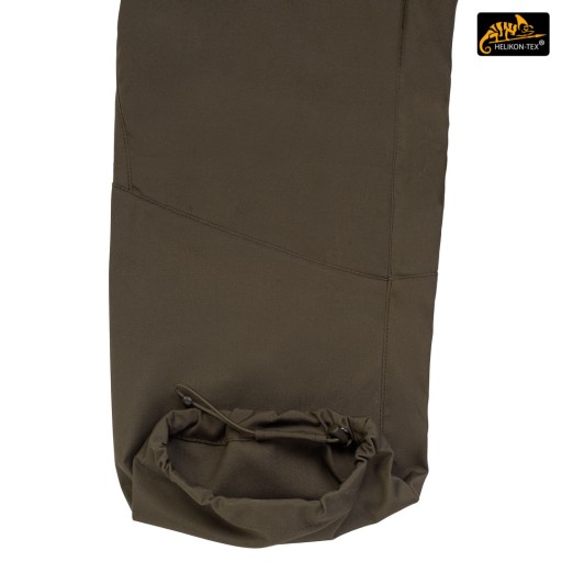 Універсальний крій гарантує практичність, комфорт і гарний зовнішній вигляд. Прямі штанини та плоскі кишені не асоціюються з типовими бойовими штанами, що робить штани ідеальними для повсякденного носіння. Довга застібка на блискавку YKK, покрита клапаном. Застібається на талії за допомогою липучки, яка дозволяє регулювати окружність під анатомію користувача або при носінні утеплюючої білизни під штанами. Ремінь і шлевки виготовлені з подвійного шару матеріалу для міцності. Штани мають розширення ззаду, яке захищає поперек і область нирок при нахилі або сидінні. Подовжена частина на спині має м'який наповнювач з дихаючої розпірної сітки MESH 3D, що дозволяє зберегти тепловий комфорт і комфорт використання разом з жорсткими лямками. Щільно розташовані шлевки для пояса шириною 50 мм. Під бічними і передніми шлевками є петлі для кріплення підручних речей за допомогою мотузки або карабінів (наприклад, гримлок). Ластовица, вшита в промежину, гарантує свободу рухів при високому підйомі ніг. Петлі з паракорду, вшиті з боків, використовуються для кріплення підтяжок (Helikon Forester Suspenders). Внизу штанини є манжети, які дозволяють притягнути ногу до взуття. Манжети з еластичної гуми Shock Cord, оснащені стопором для швидкого регулювання і спеціальним тунелем, який захищає вільний кінець манжети від випирання з ноги.