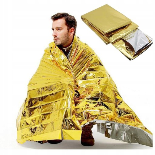 Рятувальна ковдра має багато термінів, зокрема: термоковдра, фольга NRC, рятувальна ковдра, ковдра, термоізоляційна плівка, термофольга, сріблясто-золота фольга, тому ви можете знайти цей асортимент під такими назвами, але це завжди той самий продукт . Використовується як захисна плівка від перегріву або переохолодження потерпілого. Плівка демонструє дуже хорошу стійкість до ривків і розтягувань. Користуватися фольгою дуже просто, потрібно лише знати, яка сторона для чого використовується. Срібна сторона, яка використовується з боку пацієнта, дозволяє нагрівати, а коли ми використовуємо фольгу срібною стороною назовні, ми охолоджуємо тіло. Невеликий розмір фольги дозволяє розмістити її практично скрізь. Розмір 210 х 160 см.