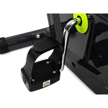 Rowerek posiada antypoślizgowe pedały ze sprzączkami na rzepy, mającymi na celu utrzymanie stabilności stopy w trakcie wysiłku oraz zapobieganie kontuzjom.