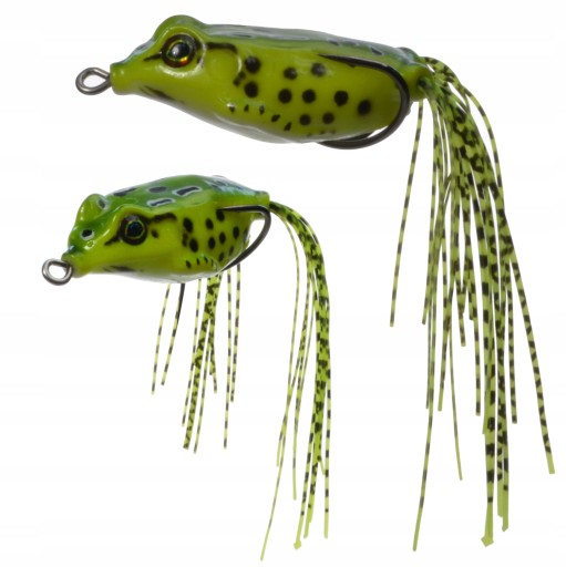 Реалістичні приманки, що імітують жаб, розроблені в 3D технології на основі знань досвідчених рибалок. Жаби були озброєні подвійним якорем і двома приманками, що імітують лапки. Завдяки надм'якій конструкції приманка супер ефективна. Відтепер навіть на самих зарослих місцях можна ловити рибу, не побоюючись зачепити, і найчастіше найкрасивіші екземпляри живляться в тих місцях, які найбільш важкодоступні.