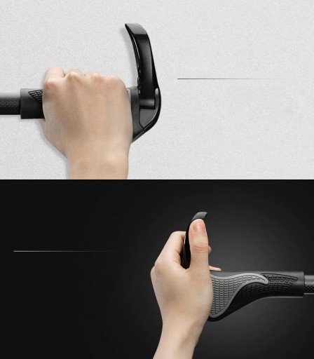 Унікальний малюнок поверхні рукоятки та ергономічна форма забезпечують поглинання ударів та надійний хват. Оснащений алюмінієвими гудками водія, які стануть в нагоді на більших дистанціях, щоб руки не сильно втомлювалися.