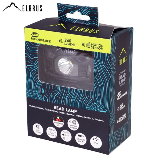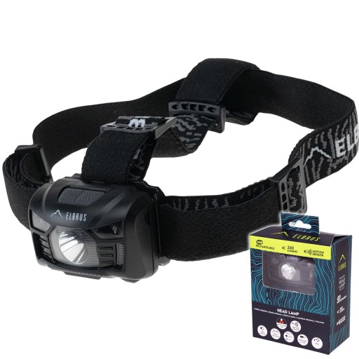 Водонепроникний туристичний налобний ліхтар Elbrus має літій-іонний акумулятор ємністю 1200 мАг, який заряджається через USB-кабель.