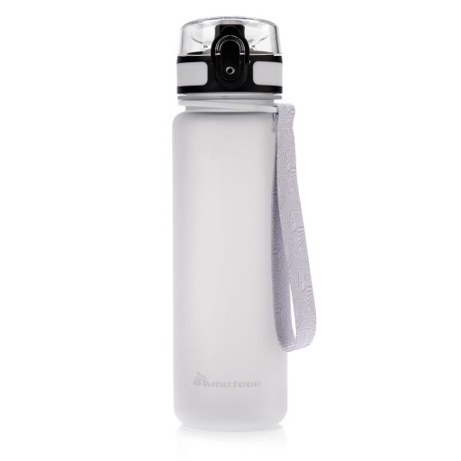 Практична пляшка для метеоритної води, яку ви можете взяти з собою на тренування, у спортзал, школу чи подорож на велосипеді. Пляшка прозора з матовим покриттям і нековзкою поверхнею.
