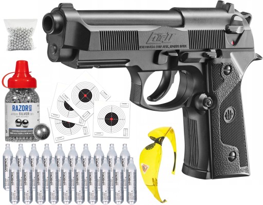 Ліцензійна копія Beretta Elite II з 12-грамовим картриджем CO2. Більшість пневматичної зброї виготовлено з міцного пластику.