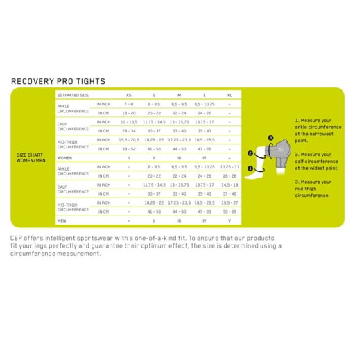 Завдяки вдосконаленому профілю компресії штани CEP забезпечують швидке відновлення після інтенсивних тренувань або змагань.