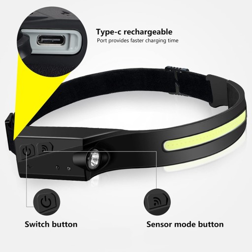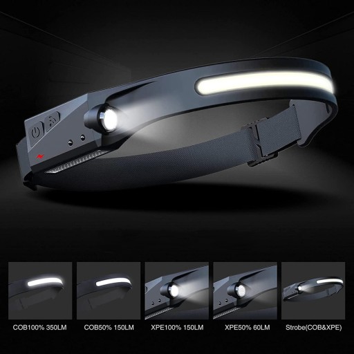 Світлодіодний налобний ліхтар може задовольнити різні потреби в освітленні. Має 5 режимів освітлення: COB100, COB50, XPE100, XPE50 і режим стробоскопа.