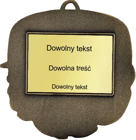 Зворотний бік медалі видно на фото поруч із прикладом ламінованої пластини з гравіюванням кольору медалі.