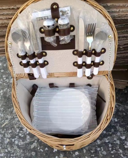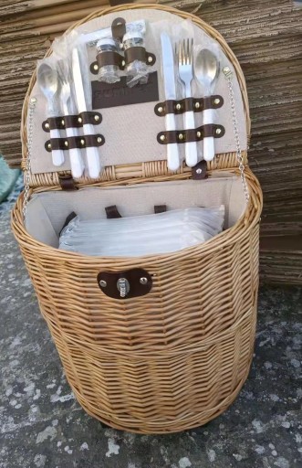 - Надзвичайно практичний і елегантний кошик для пікніка з лози, зі знімною термосумкою у вигляді додаткового відділення.