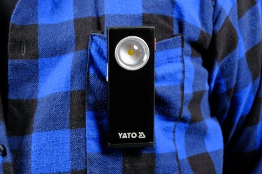 Міцний алюмінієвий ліхтарик Yato, оснащений діодом, який забезпечує світло 500 лм і радіус дії 55 м.