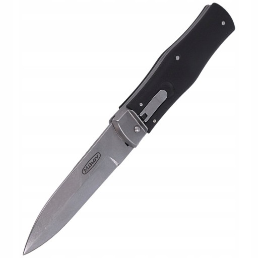 PREDATOR STONEWASH, автоматичний ніж (swichblade) від чеської фірми Mikov з Мікуласовіце з клинком stonewash зі сталі N690. Цей регіон спеціалізується на виробництві столових приборів з 1794 року, його називають «чеським Золінгеном».