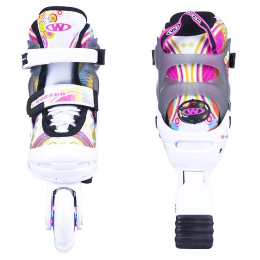 Високоякісні ролики WORKER Picola LED захоплюють своїм сучасним дизайном і багатством функцій, зокрема: легке регулювання розміру однією кнопкою. Крім того, вони оснащені передніми колесами, які підсвічуються під час руху. Для освітлення не потрібні батарейки, за все відповідає магнітна енергія, яка утворюється під час обертання колеса. Міцний корпус PP HI Impact з підшипниками ABEC 5 Carbon гарантує плавну та комфортну їзду. Система шнурівки Quicklace, подвійна застібка Velcro і застібка MicroLock забезпечують легке надягання та знімання ковзанів і ідеальну стабілізацію стопи у взутті. Роликові ковзани WORKER Picola LED оснащені знімним гальмом, що дозволяє безпечно зупинятися.