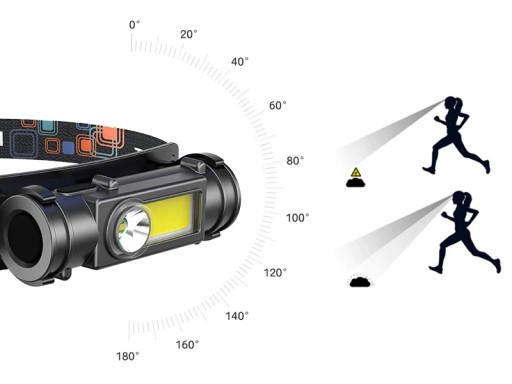 Налобний ліхтар 2 в 1, оснащений світлодіодами COB і XPE з регульованим кутом нахилу.