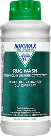 Ваші водонепроникні килимки для домашніх тварин і килимки можуть вбирати воду через те, що довговічна водовідштовхувальна здатність (DWR) була послаблена брудом або через те, що вони були очищені звичайними пральними засобами. Бруд притягує воду, а побутові мийні засоби залишають привабливі (гідрофільні) залишки, які спричиняють просочування тканини під час використання у вологих приміщеннях. Якщо килимки, доріжки чи обладнання для вашого вихованця відносно нові або нещодавно оброблені Nikwax Rug Proof™, тоді очищення за допомогою Nikwax Rug Wash™ не лише видалить забруднюючі речовини, такі як бруд і залишки побутових миючих засобів, але й оживить DWR.