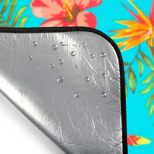 Це ковдра з такою великою поверхнею (200х200 см), що на ній без проблем поміститься вся родина. Це рішення набагато ефективніше, ніж дві менші ковдри. Немає ризику, що ковдри розійдуться, а наші речі впадуть на траву або, що ще гірше, на пісок. Його безперечна перевага, яка відразу помітна, це дизайн. Ідеально підібрані кольори та графіка з дуже модними фламінго роблять ковдру не тільки зручною та функціональною, але й приємною для ока.