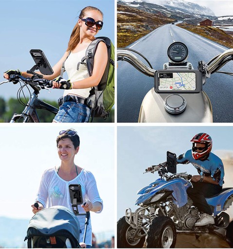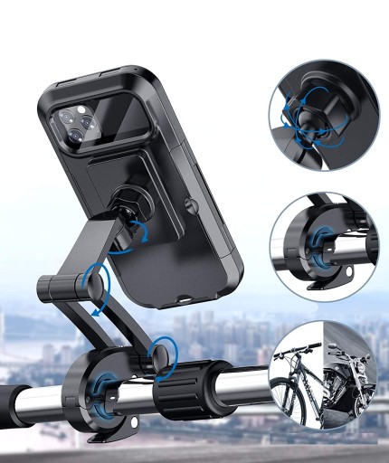 Водонепроникний тримач для телефону має закриту конструкцію, що робить його безпечнішим за більшість наявних на ринку тримачів. Забезпечує рейтинг водонепроникності IPX6, щоб повністю захистити ваш телефон від бризок, дощу, снігу, бруду та пилу. Він має унікальну систему регулювання гвинтового кріплення та стійкий до ударів. Чохол захищає телефон від падінь.