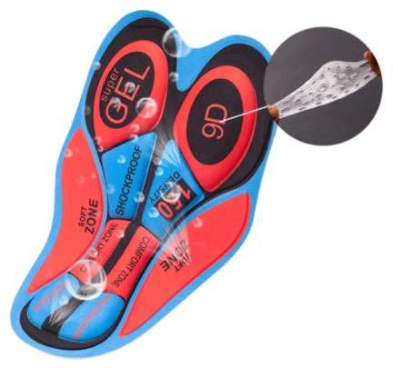 - Гелеві елементи устілки забезпечують комфорт використання і додатково характеризуються ефектом пам'яті форми, вони повертаються до початкової форми після кожного використання,