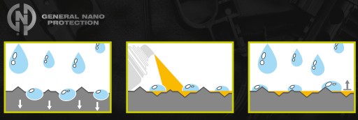 - Створює невидимий гідрофобний шар, який відштовхує молекули води. Довго захищає і оберігає очищену поверхню