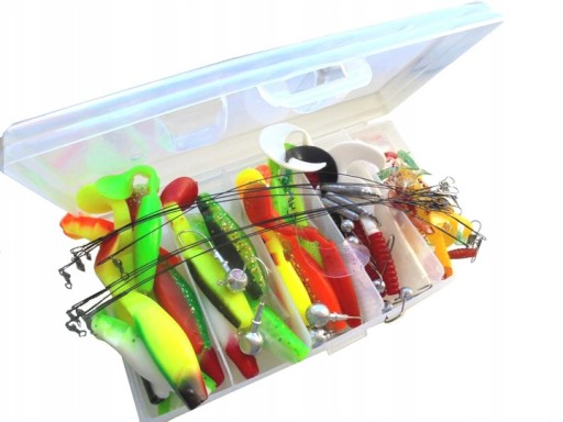 Набір спінінгових приманок в рибальській коробці - 71 елемент, ідеально підходить для початківців і досвідчених рибалок на спінінг. Різноманітність кольорів і ваги пропонованого набору дозволяє підлаштувати приманку під будь-які умови. Набір для кожної хижої риби методом спінінга.