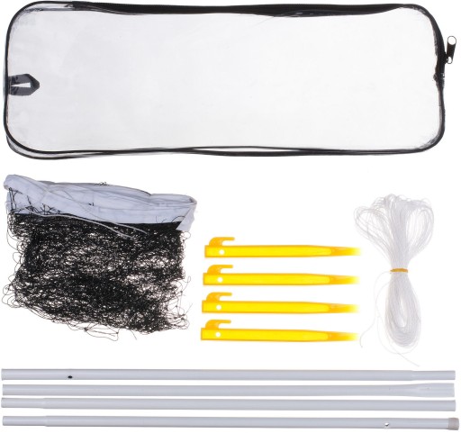 Модель має стійку раму, яка легко переживе будь-які удари човника та пориви вітру, забезпечуючи комфортну гру. Додатково каркас складається і упаковується в 40-сантиметровий прозорий чохол на блискавці. Це полегшує зберігання і транспортування обладнання. Він точно не загубиться, сітка не заплутається, і все це не забрудниться та не пошкодиться, навіть коли не використовується. Довжина до 4 м забезпечує незабутні враження для кожного, незалежно від рівня майстерності, майже як на професійному майданчику для бадмінтону.