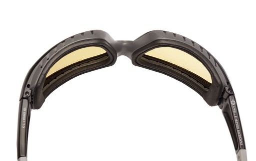 Окуляри мають змінні лінзи з полікарбонату товщиною 2,2 мм. Зчеплення з обличчям забезпечує знімний жорсткий спонж EVA з вентиляційними отворами. Вентильовані бічні щитки забезпечують додатковий захист.