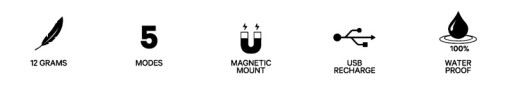 Універсальний тримач дозволяє кріпити ліхтар не тільки на кермо, але і на передню вилку. Світильник невеликий, не займає багато місця і ідеально впишеться в дизайн більшості оправ. Завдяки магнітному тримачу ми можемо легко та швидко його знімати та одягати.
