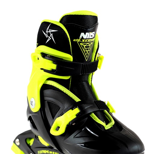 NJ0321 A Nils Extreme - роликові ковзани з серії, призначеної для дітей і підлітків. Виріб являє собою поєднання барвистого дизайну та високої якості виготовлення. Модель NJ0321 A Nils Extreme оснащена триступеневою регулюванням розміру взуття, що дозволяє підлаштовувати його під потреби користувача. Це рішення подовжує термін їх служби та дозволяє використовувати їх більш ніж одній людині. Матеріал EVA, піна 3 мм і дихаюча мембрана гарантують комфорт під час катання. Легке та міцне взуття з системою ремінців забезпечує максимальну безпеку. Використовуючи просту систему регулювання, ви можете легко і швидко підлаштувати розмір під ногу користувача.