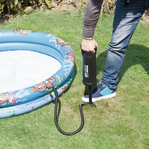 Завдяки трьом змінним наконечникам швидкий і акуратний поршневий насос підходить для більшості надувних предметів, має еластичний шнур, який дозволяє легко дістатися до важкодоступних місць. Він качає повітря в обох напрямках рухами вгору і вниз. Завдяки такій зручності час накачування та очікування готовності надувних речей до використання значно скорочується.