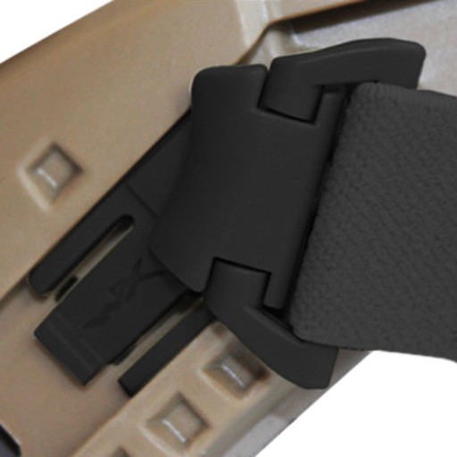 За допомогою гачків RAS ремені можна легко прикріпити до рами окулярів Wiley X (відкріпивши стандартний ремінець). Повне складання не потребує використання інструментів, і ми можемо виконати його всього за кілька секунд. Окуляри, встановлені на рейках шолома, більш зручні у використанні, вони завжди залишаються на місці після зняття і, на відміну від окулярів із традиційним ремінцем, не сповзають з шолома. RAS має систему екстреного розблокування (11 Нм), яка запобігає травмам шиї в разі випадкового зачеплення окулярів за виступаючі елементи навколишнього середовища.