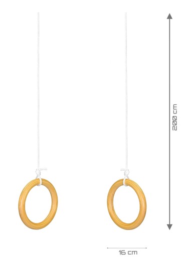 Гімнастичні кільця є основними приналежностями, що входять до кожного гімнастичному комплекту. Відпрацювання висів і опор на колесах, перекатів і гойдалок дітей зміцнюють м'язи рук і спини. Основні аксесуари для дітей на гімнастичній драбині, які подарують велике задоволення. Розгойдування і перекидання на колесах надовго займуть дітей і натренують міцний хват.