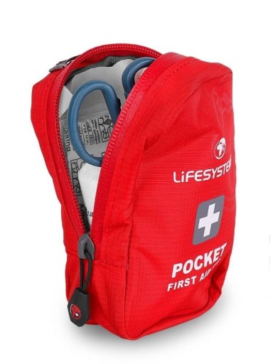 Кишенькова аптечка*. Кишенькова аптечка* Lifesystems Pocket First Aid Kit* має компактні розміри, тому ви можете помістити її в невелику кишеню свого рюкзака. Доступ до нього можливий, розстібнувши верхню блискавку, щоб можна було діяти якомога швидше. Крім того, червоний колір моделі дозволяє легко помітити її під час пошуку в інвентарі рюкзака.