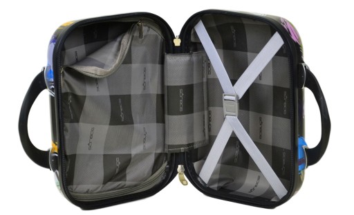 Сучасна легка модель з полікарбонату. Внутрішня частина багажника розділена на два функціональних відділення, розділених перегородкою на блискавці. Ззаду багажника є еластичний ремінь, завдяки якому ми можемо прикріпити багажник до рами валізи.