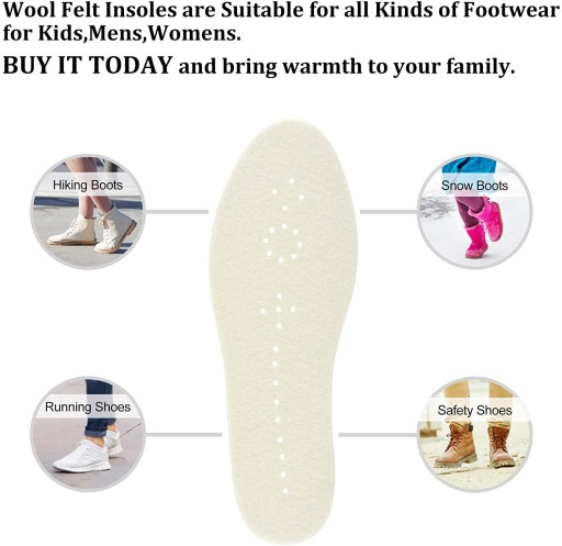 Ці взуттєві устілки для дітей, чоловіків і жінок виготовлені з вовняного повсті високої щільності, щоб зберегти ноги в теплі та комфорті під час роботи на вулиці, що є величезним полегшенням.