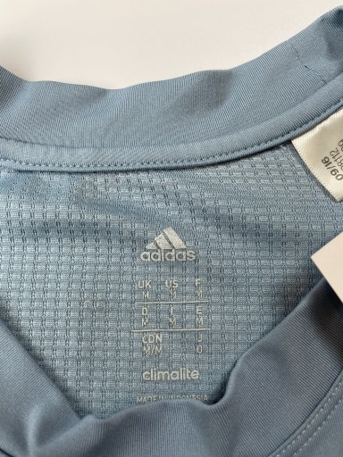 Синя чоловіча спортивна футболка. Футболка має короткі рукави та круглий виріз. Матеріал футболки гнучкий, що дозволяє краще прилягати до фігури. Футболка виготовлена з тканини найвищої якості за технологією Climalite. Основним завданням технології є поглинання надлишкової вологи з поверхні тіла та транспортування її назовні матеріалу, що забезпечує швидке та ефективне випаровування поту. На футболці немає таблички зі складом матеріалу, на нашу думку це поліестер.