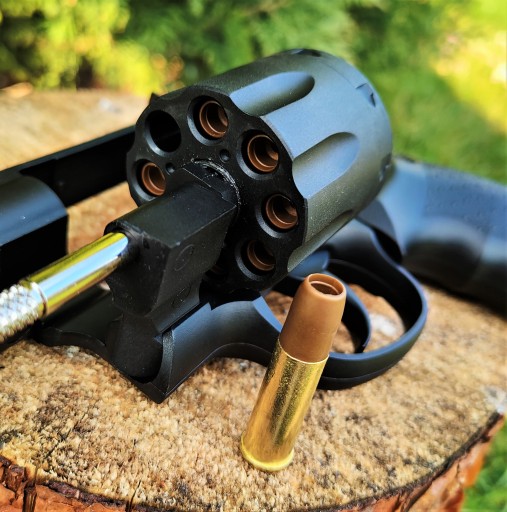 ✅ Револьвер має міцну конструкцію з металів (внутрішній ствол, гільзи, дрібні деталі) та полімеру (скелет, циліндр і рукоятка).