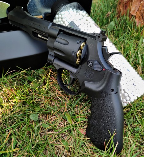 ✅ Револьвер має реалістичну систему заряджання, точно імітує механізм револьвера Smith Wesson, що складається з обертового циліндра та металевих муляжів патронів, в які ми розміщуємо страйкбольні кульки.