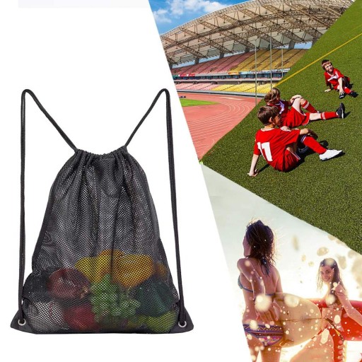 Сітчастий рюкзак — ідеальний продукт для носіння необхідного спорядження для плавання, наприклад ласт або спортивного одягу. Сітка, з якої виготовлена сумка, забезпечує вільний потік повітря, що полегшує висихання речей усередині. Сумка ідеально підходить для носіння одягу для занять у спортзалі, басейну, футбольних тренувань та взуття. Спеціальні шнурки у вигляді зав'язок надійно фіксують сумку.