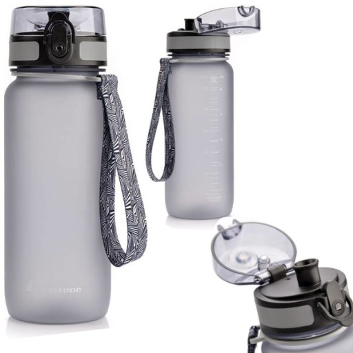 ПЛЯШКА ДЛЯ МЕТЕОРНОЇ ВОДИ 650 МЛ Практична пляшка бренду Meteor, яку ви можете взяти з собою на тренування, у спортзал, школу чи подорож на велосипеді. Пляшка прозора з матовим покриттям і протиковзкою поверхнею. Не обмежує течію напою. Підходить для гарячих і холодних напоїв. Він оснащений мірним стаканом і ситечком для відокремлення напр.