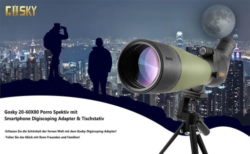 Gosky Spektiv зі штативом, сумкою для перенесення та адаптером для смартфона - телескоп BAK4 - водонепроникний для стрільби по мішенях, полювання, спостереження за птахами, диких ландшафтів
